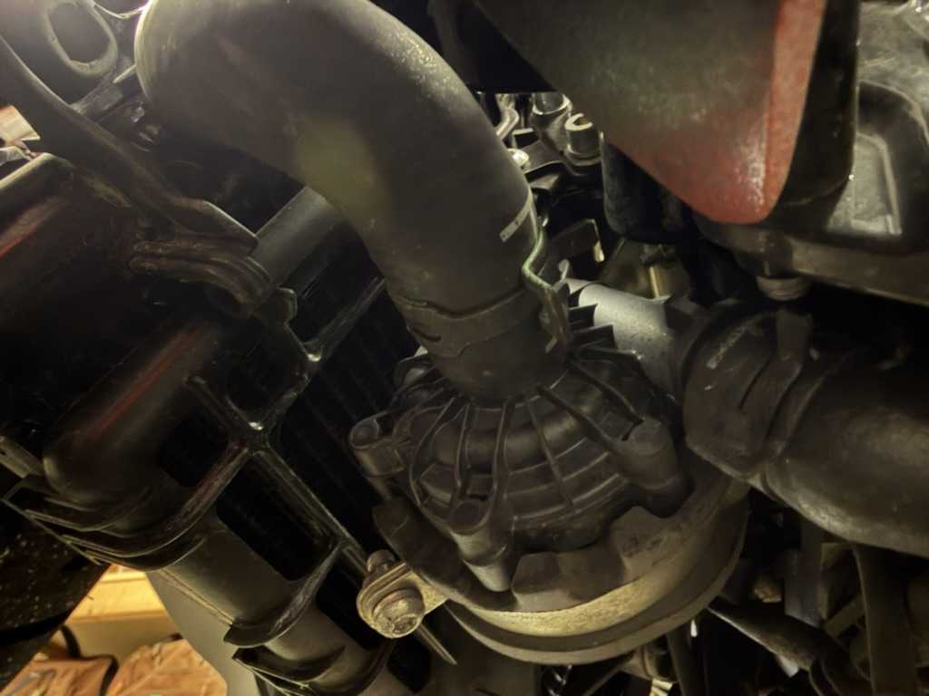 There was no obvious power connector under the front end of the bike, so I started googling. I found a reference to C73A on a Harley Street Glide install document that showed a location behind the water pump- this was a good clue.