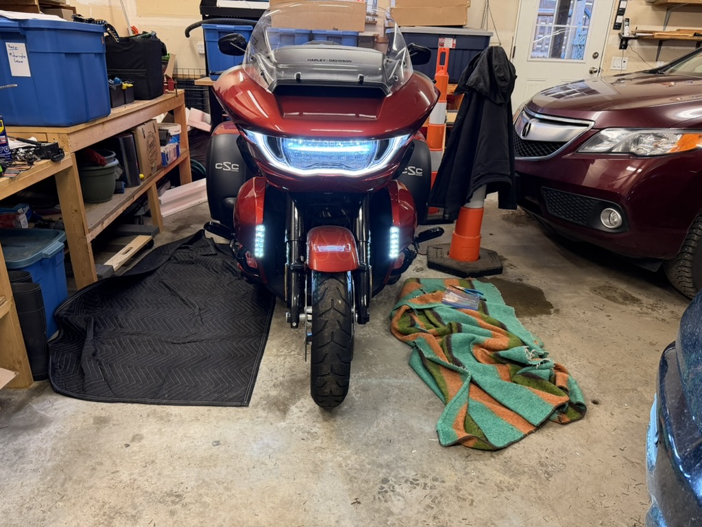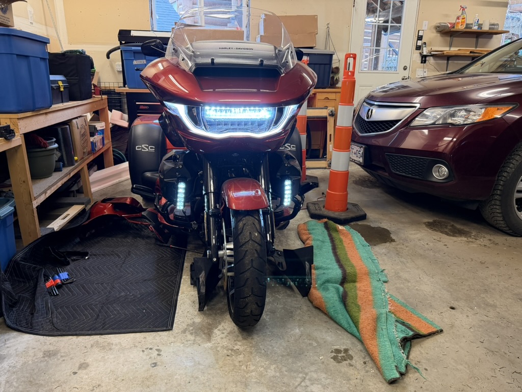 I’m over a year behind on updates so this post might seem out of left field. Last year I got my new 2025 Road Glide FLTRX and had it converted to a trike. Over the winter I’ve had a couple of little updates I wanted to get done, the largest of which was installing Harley OEM fog lamps in the lowers.