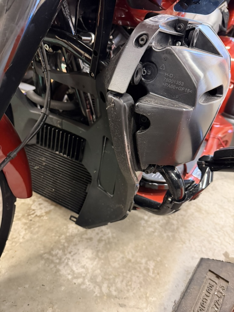 Removing the lowers on the newer Road Glides involves multiple parts: a shield for the radiator, exterior painted lowers, and interior (unpainted) lowers are the main bits. It is hard for me to say what part was ‘hardest’ to deal with, but probably the painted lowers were the most nerve wracking.