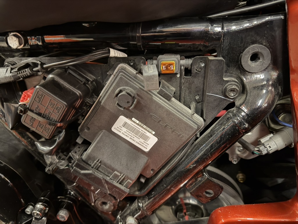 The next problem was getting the ‘dummy’ cap off of the connector. But the instructions said to remove the maxi-fuse before fiddling with the electrical, and so that is what I did. I found a helpful video going through the process that prevented me from triggering the bike’s alarm system while removing the fuse.
